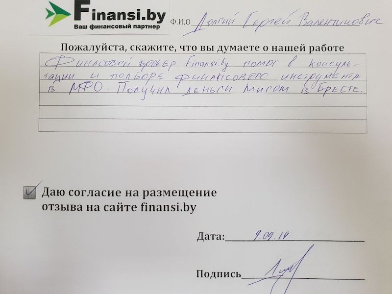 У наших партнеров мы поможем Вам получить кредит от 50 бел.руб до 100 000 бел.руб