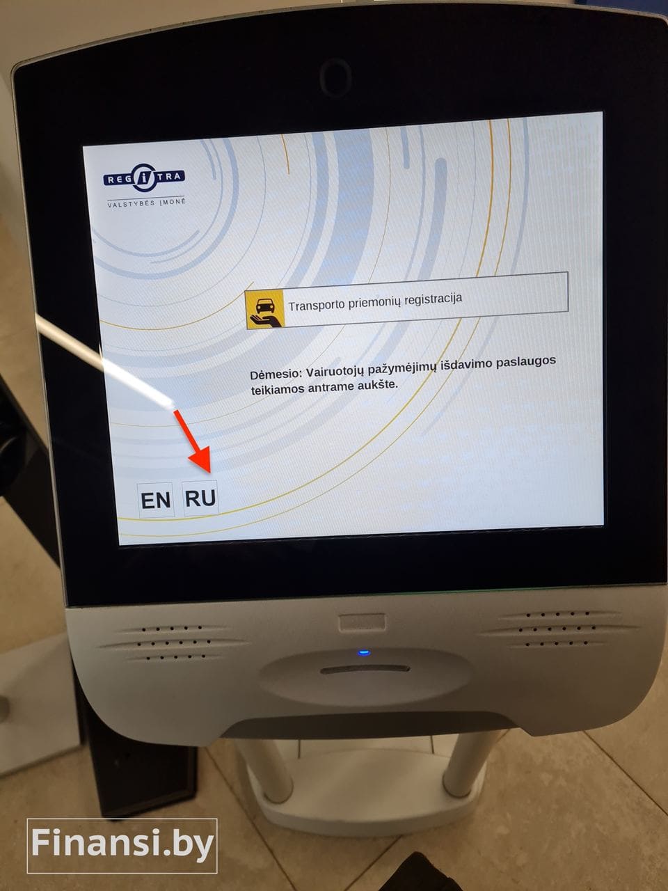 Следуйте к информационной панели, чтобы занять очередь и выбрать услугу. Выбирайте русский язык (он там есть), после возьмите талончик и ждите своей электронной очереди.